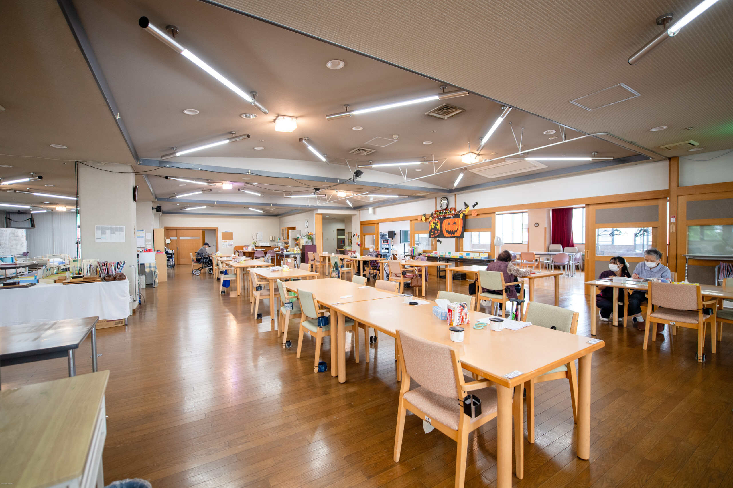 要支援・要介護の方の在宅生活を日帰りでご支援致します。専用車での送迎・作業療法士、理学療法士によるリハビリ・昼食・入浴・集団レクリエーション等を提供しております。送迎車は、車椅子のまま乗車出来るリフト車をご用意しております。入浴は個浴・一般浴・リフト浴を身体状況に合わせご利用頂けます。集団レクリエーションでは、職員が「明るく楽しく元気に」をモットーに色々な内容を提供し楽しんで頂いていおります。介護・看護・リハビリ・栄養部と情報を共有し、充実した1日を過ごして頂いております。
